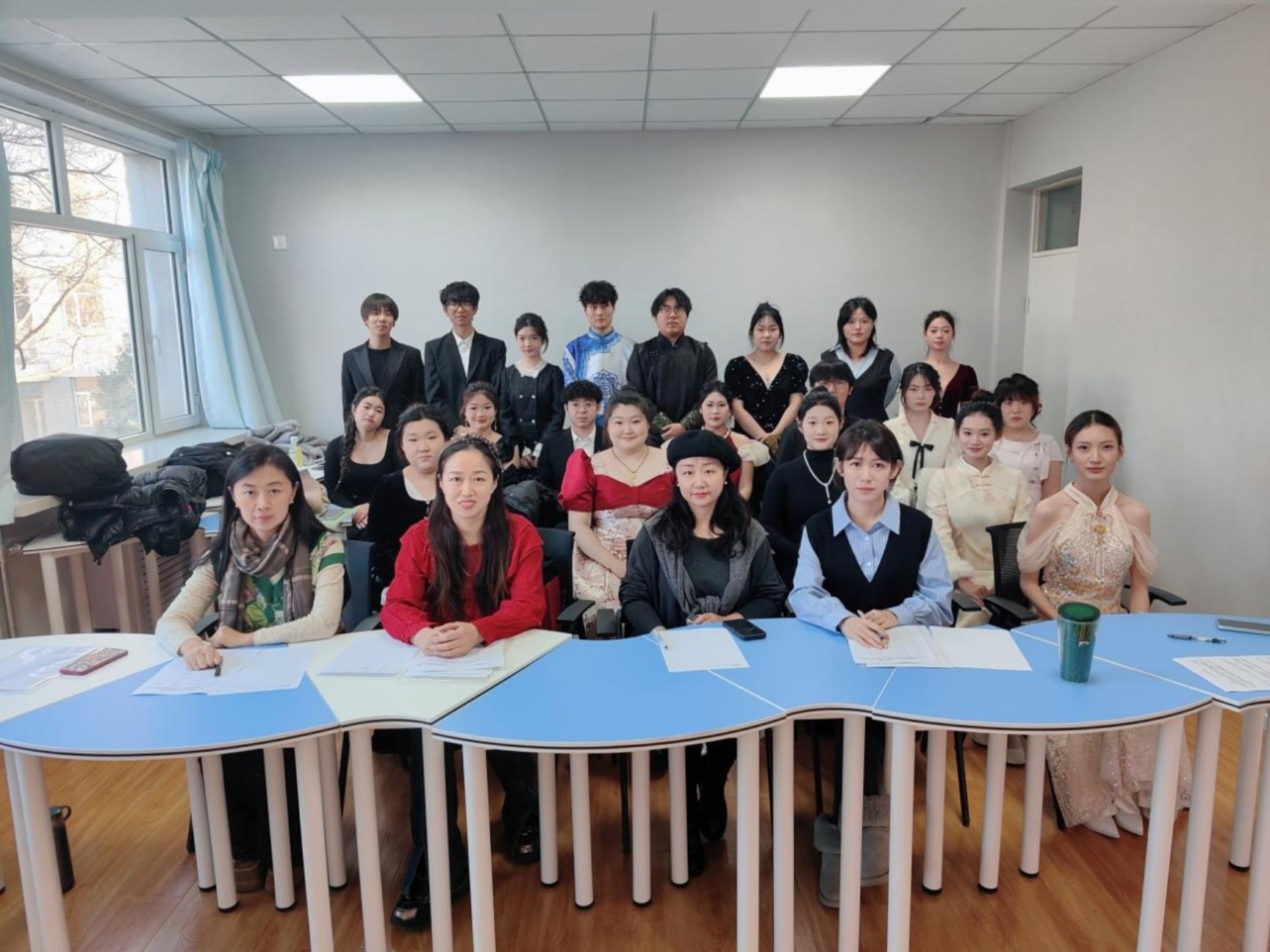 2025年12月29日,音乐学院钢琴教研室在和雅楼7202演播厅成功举办了“思政入乐 即兴华章——2024级钢琴即兴伴奏教学成果展示”活动,4名教师评委对参与展示的76名学生进行了现场评分。