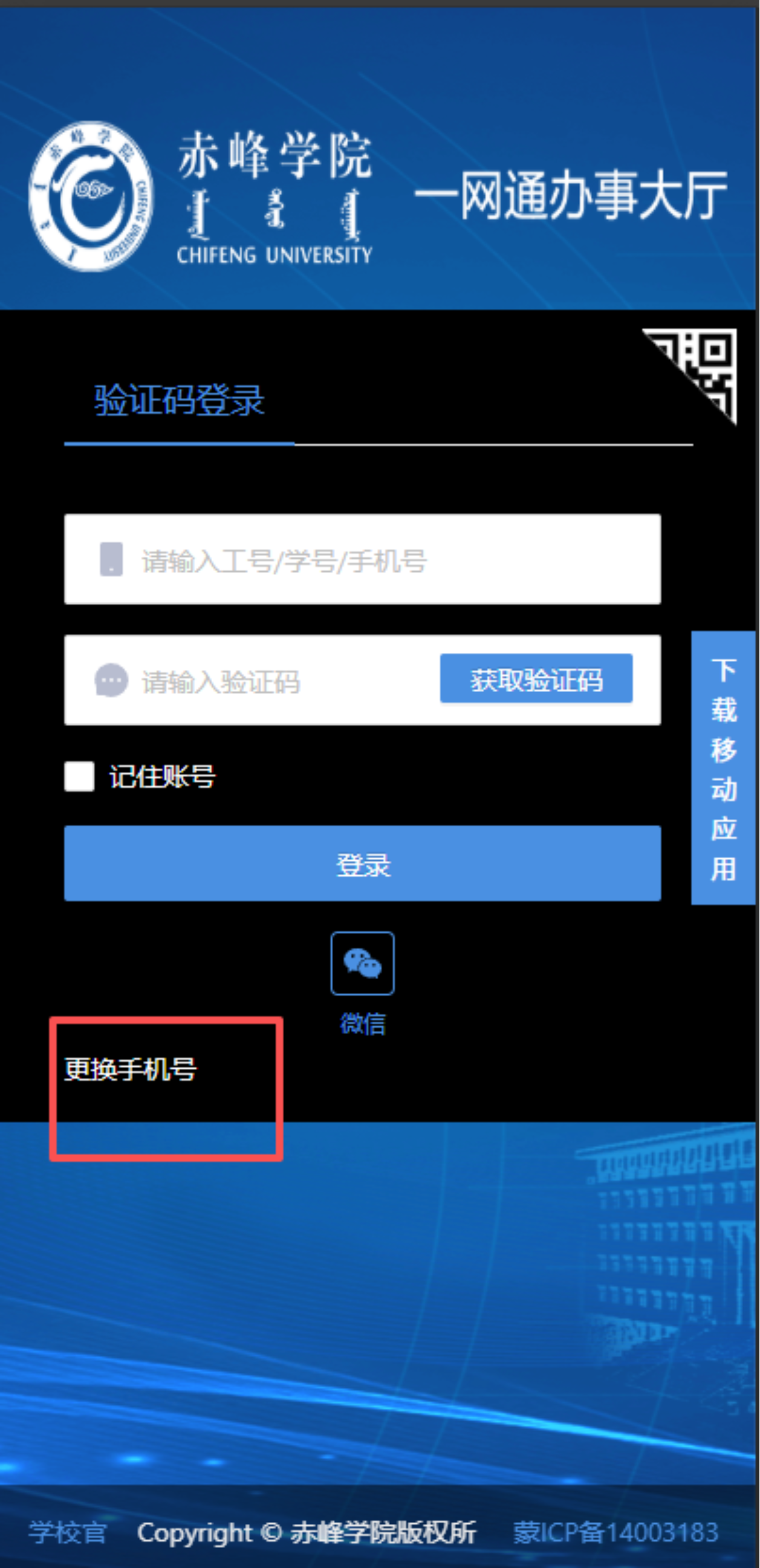 注意:如果提示账号不存在或未绑定手机号,要去更换手机号维护研究生账号的手机号
