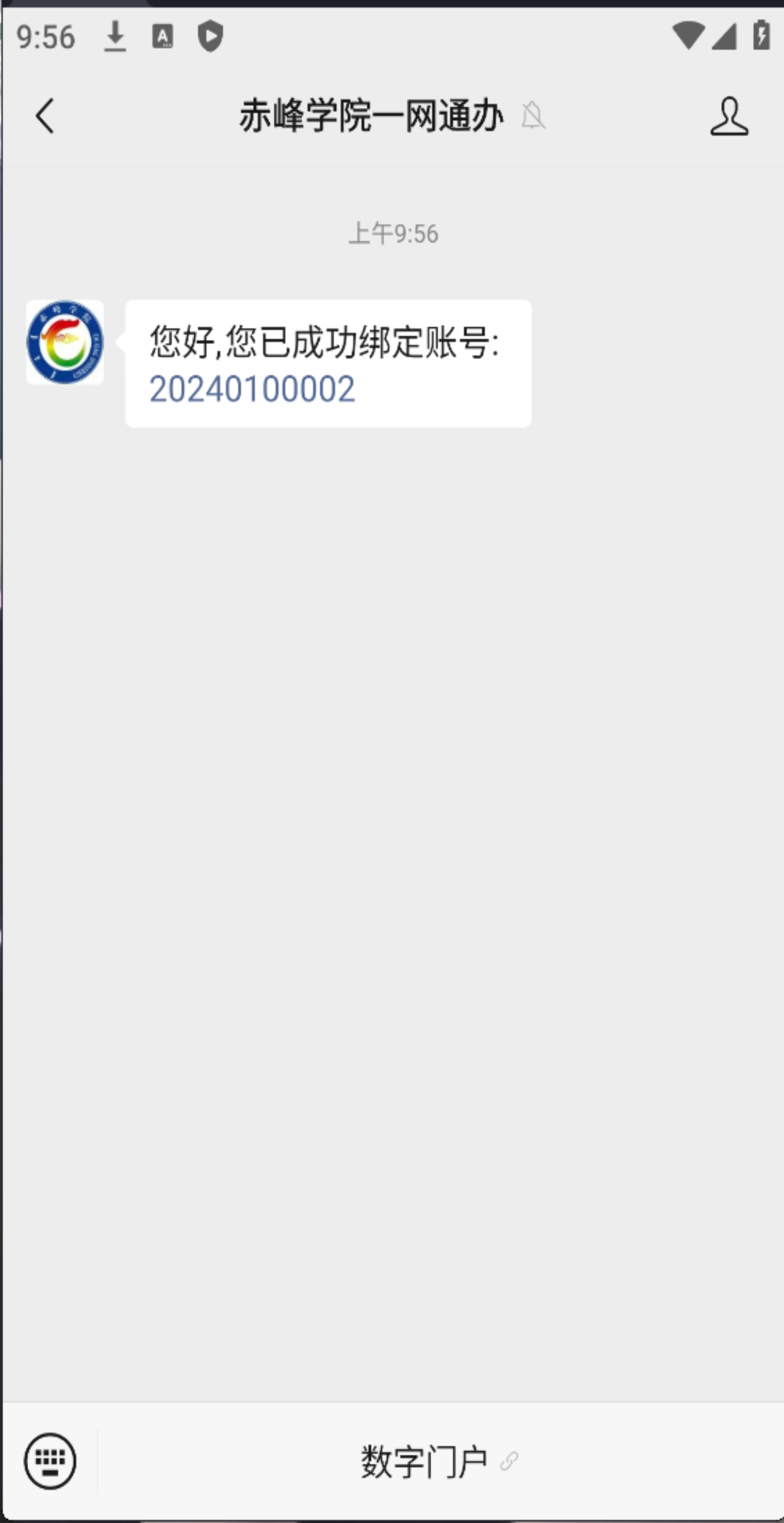 1、手机微信搜索“赤峰学院一网通办”公众号,->点击数字门户,进入一网通办办事大厅界面