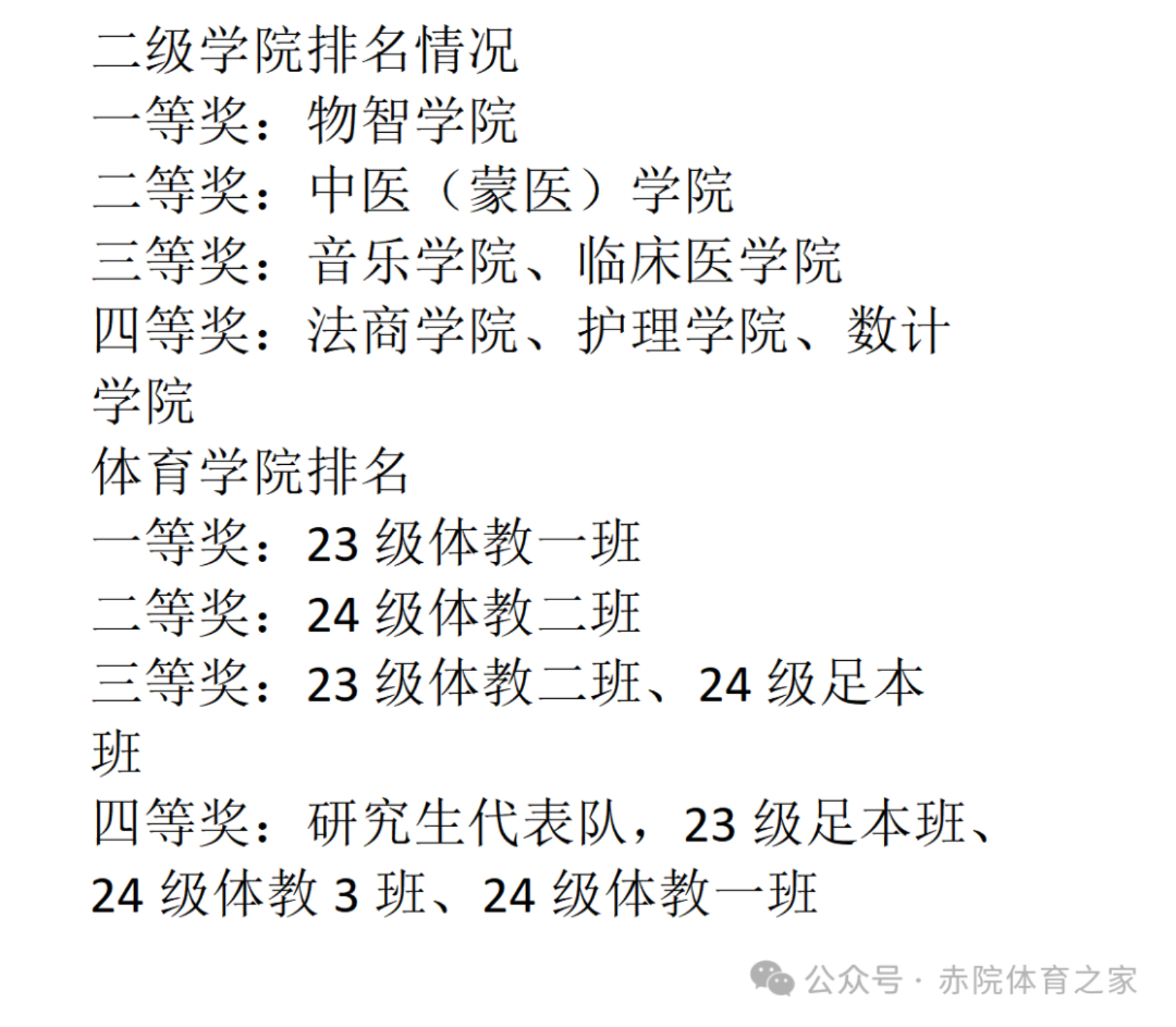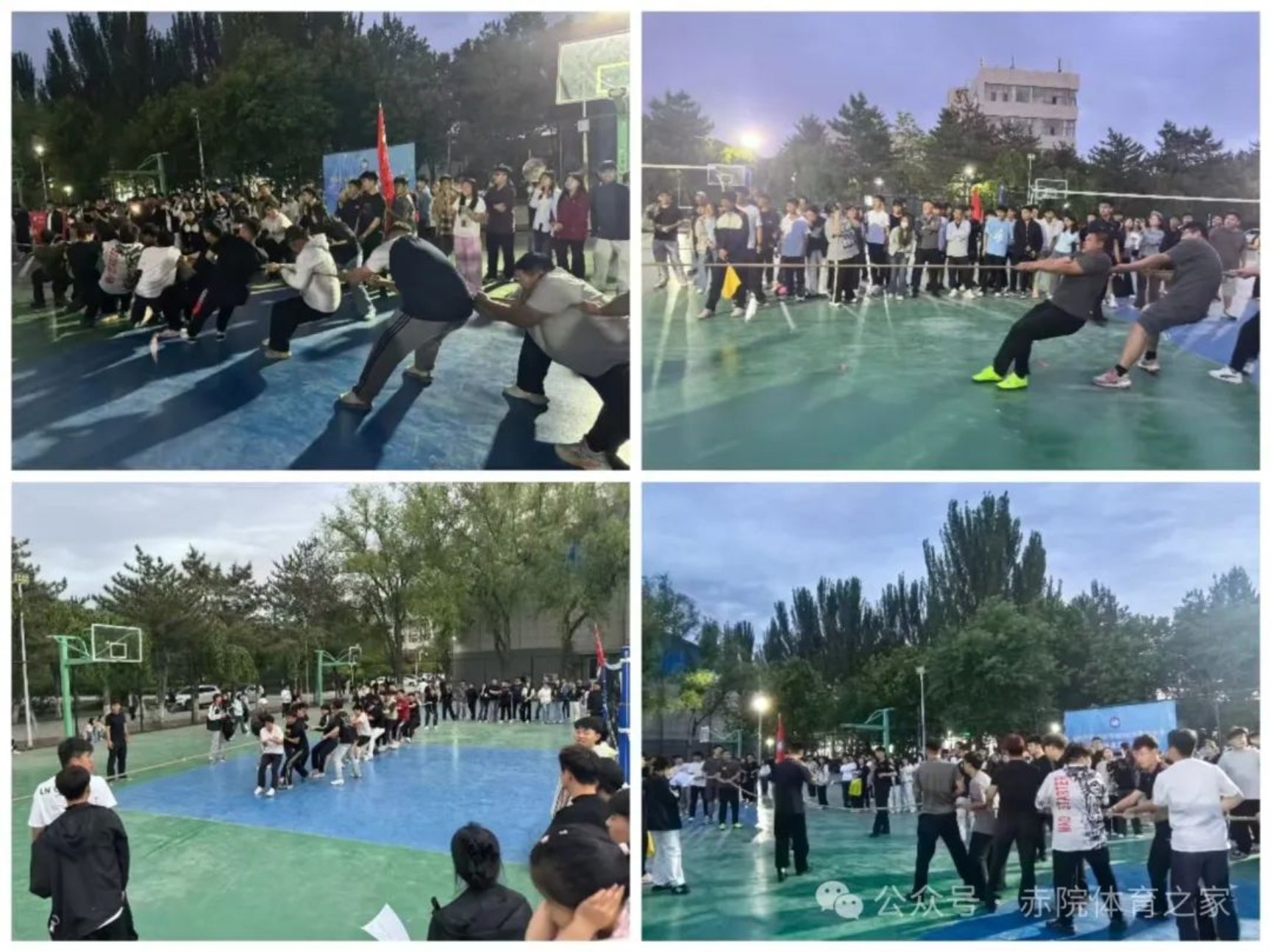 为深入贯彻落实校“六有五引领 龙腾北疆”党建品牌精神,大力弘扬民族传统体育文化,铸牢中华民族共同体意识。赤峰学院体育学院于2025年5月19日晚7点在室外排球场举办了一场拔河比赛,比赛现场人声鼎沸、热闹非凡,一场充满激情与力量的拔河比赛在此激烈上演。此次比赛由体育学院主办,吸引了14个二级学院和体育学院16的个班级踊跃参与,同学们摩拳擦掌,跃跃欲试,都渴望在赛场上一展风采。比赛现场,随着裁判一声哨响,双方队员瞬间紧握长绳,双脚用力着地,身体向后倾斜,齐心协力往后拉。拔河不仅是体力的较量,更是团队协作的比拼。那些咬牙坚持的瞬间,那些彼此鼓劲的时刻,都在诠释着团结的意义,每支队伍都展现出了顽强的斗志和团结协作的精神。经过多轮紧张激烈的角逐,赛场上,选手们全神贯注,全力以赴;赛场下,观众们的加油助威声此起彼伏,将比赛氛围推向一个又一个高潮。经过多轮紧张激烈的角逐,最终,各个学院的排名如下: