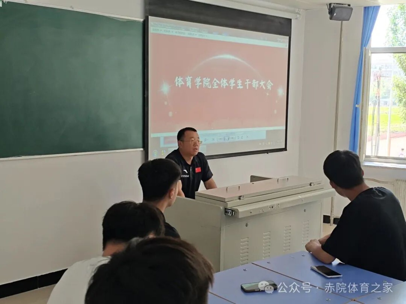赤峰学院体育学院全体学生干部大会于2025年6月23日在博远楼203顺利举行。此次会议由团学办主任米宏伟老师主持,旨在加强学生干部的责任意识,提升学院安全管理水平,并强调考试纪律,营造良好的学习氛围。
