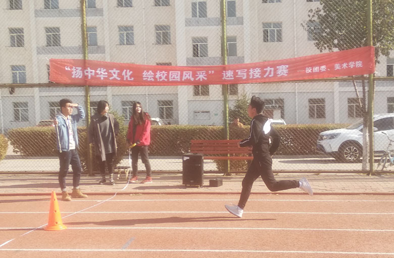 10月14日上午,由校团委和美术学院联合举办的“扬中华文化·绘校园风采”速写接力赛在学校田径运动场顺利举行。共有来自全校13个二级学院的代表队参加了比赛。美术学院团学工作负责人、学生联合会分会全体成员参与并观看了比赛。