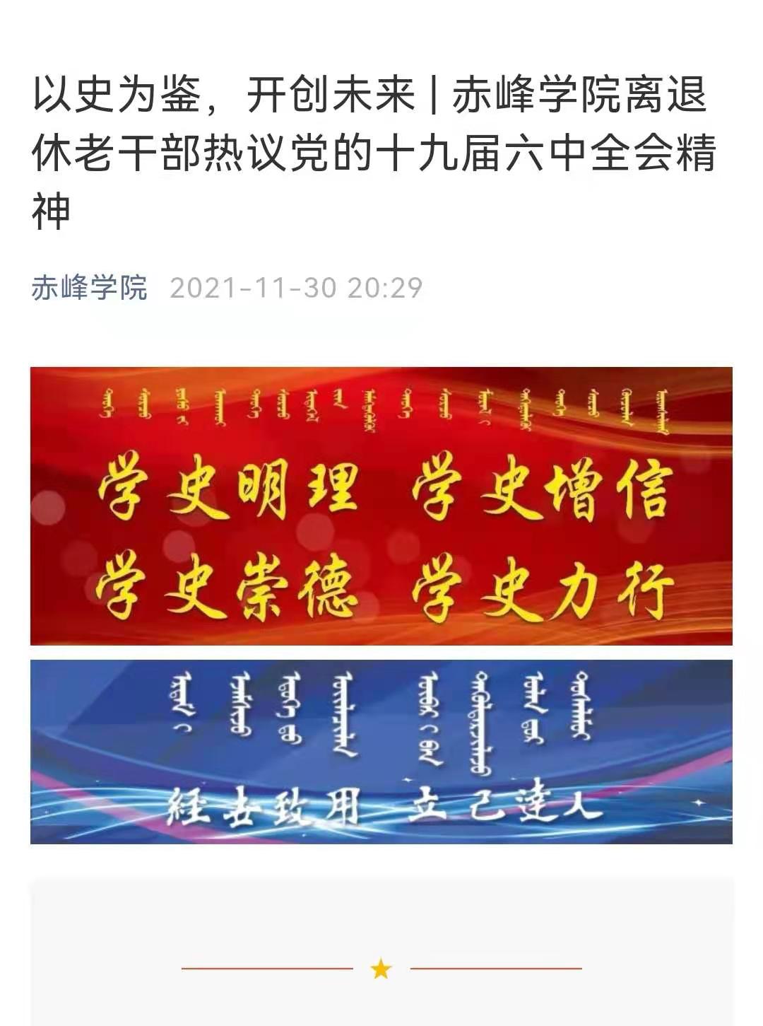 “以史为鉴,开创未来”离退休老干部热议党的十九届六中全会精神