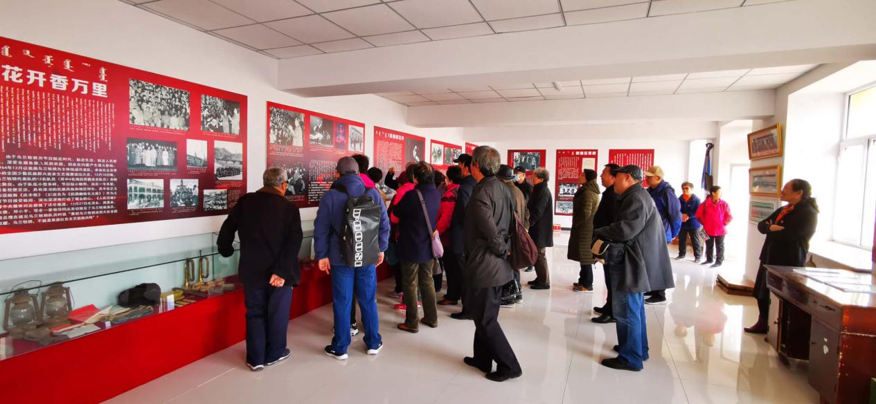 此行在海拉苏镇党委特木尔巴根书记的全程陪同带领下老党员们参观了布日敦塔拉游牧部落及万亩稻田,当地党委政府注重水土资源保护与稻田品种改良,极大地改善了牧区的生态环境,提高了农牧民的物质生活水平。海拉苏镇蒙古族中学,图书室、阅览室以及各种设施配套齐全,为社会主义建设培养了大批优秀人才,老党员们感叹之余为学校无偿捐赠了部分图书,给学生们播撒了知识的甘露。宏伟壮观的海拉苏水利枢纽工程彰显着翁牛特旗人民战天斗地的豪迈气概。海拉苏镇史馆、乌兰牧骑诞生地纪念馆展示的是当地人们追根溯源铭记历史,不忘初心再创辉煌的精神风貌。