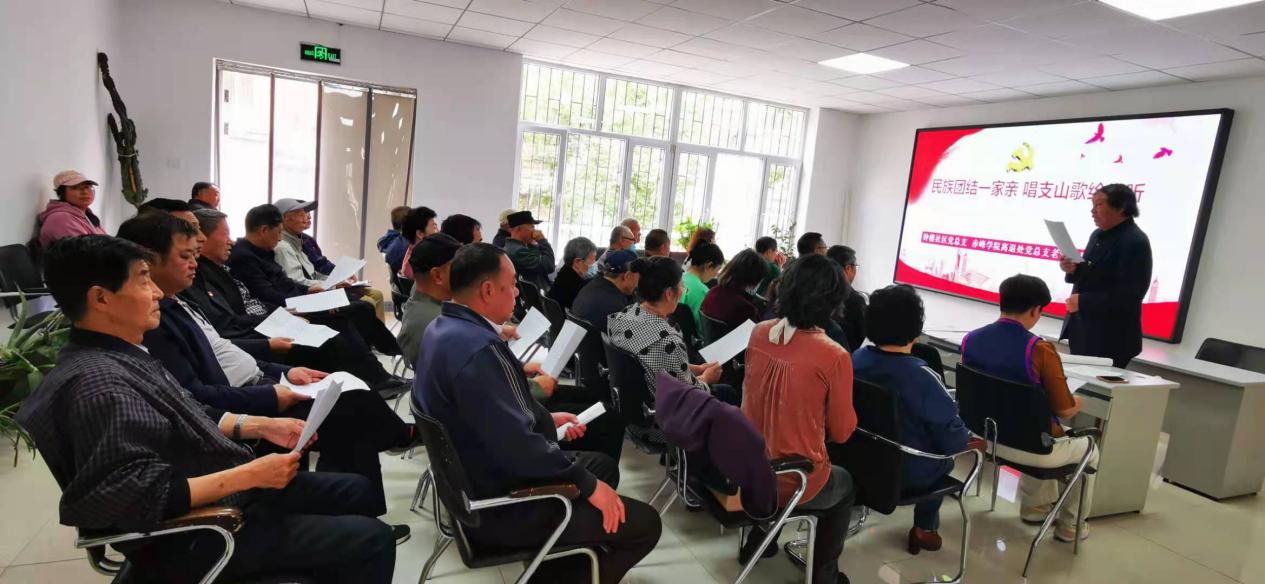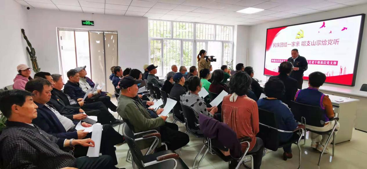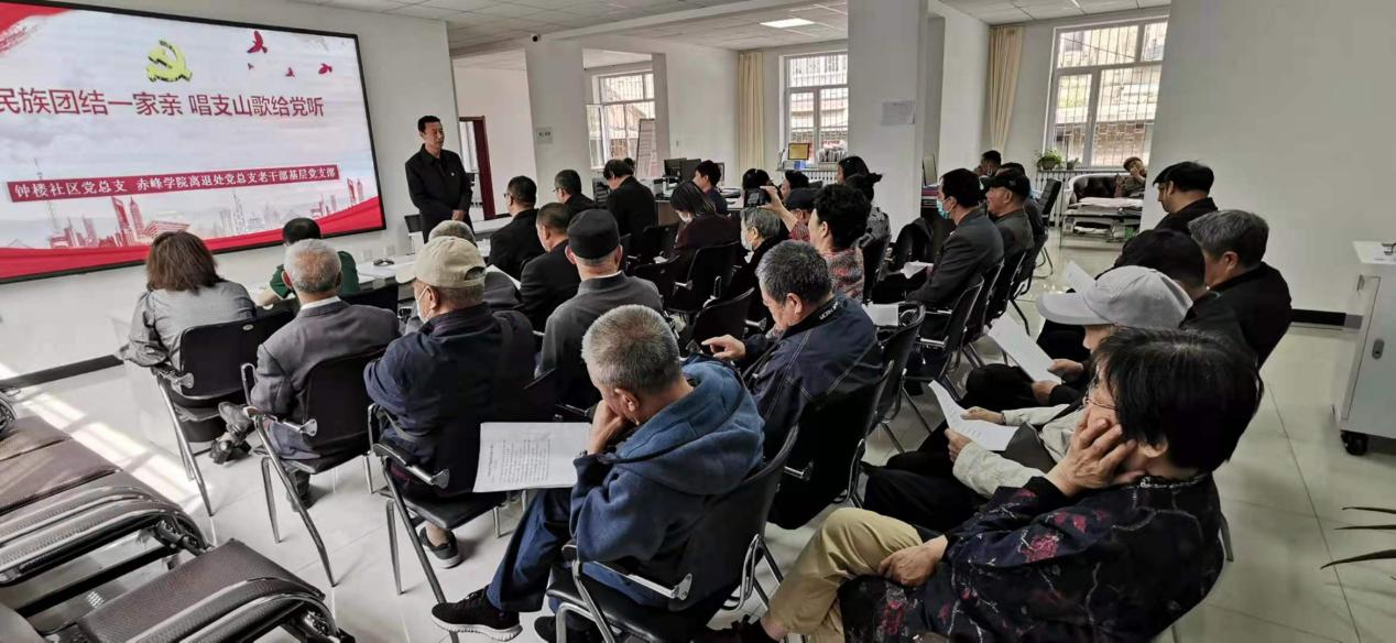 为庆祝中国共产党成立100周年,加强革命传统教育和党史学习教育,增强退休老党员和社区基层党员干部的责任意识和爱国情怀,5月11日上午,离退处老干部党支部与钟楼社区党总支联合开展“民族团结一家亲,唱支山歌给党听”主题党日活动,三十余名老党员代表参加了活动。社区党总支书记刘英主持并讲话。