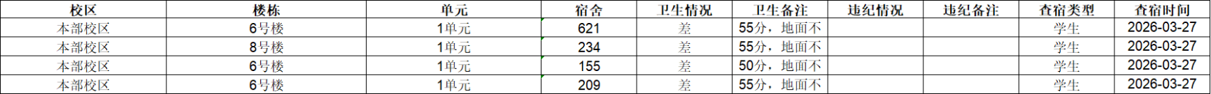 2025-2026学年第二学期第4周宿舍卫生检查通报