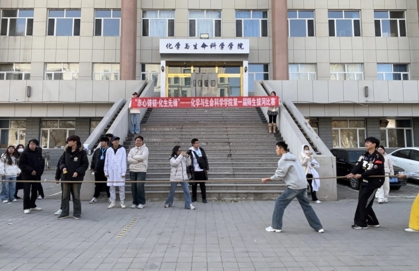 2025年11月15日至19日,赤峰学院化学与生命科学学院在崇实楼前成功举办第一届拔河比赛。全院26支班级队伍踊跃参与,经过15日至16日的小组赛激烈角逐,14支队伍晋级决赛。决赛当天,师生友谊赛率先进行,随后学生组展开终极对决。最终,2025级化学工程与工艺一班夺得冠军,同专业AISEC班、二班分获亚、季军,生物制药班获第四名。