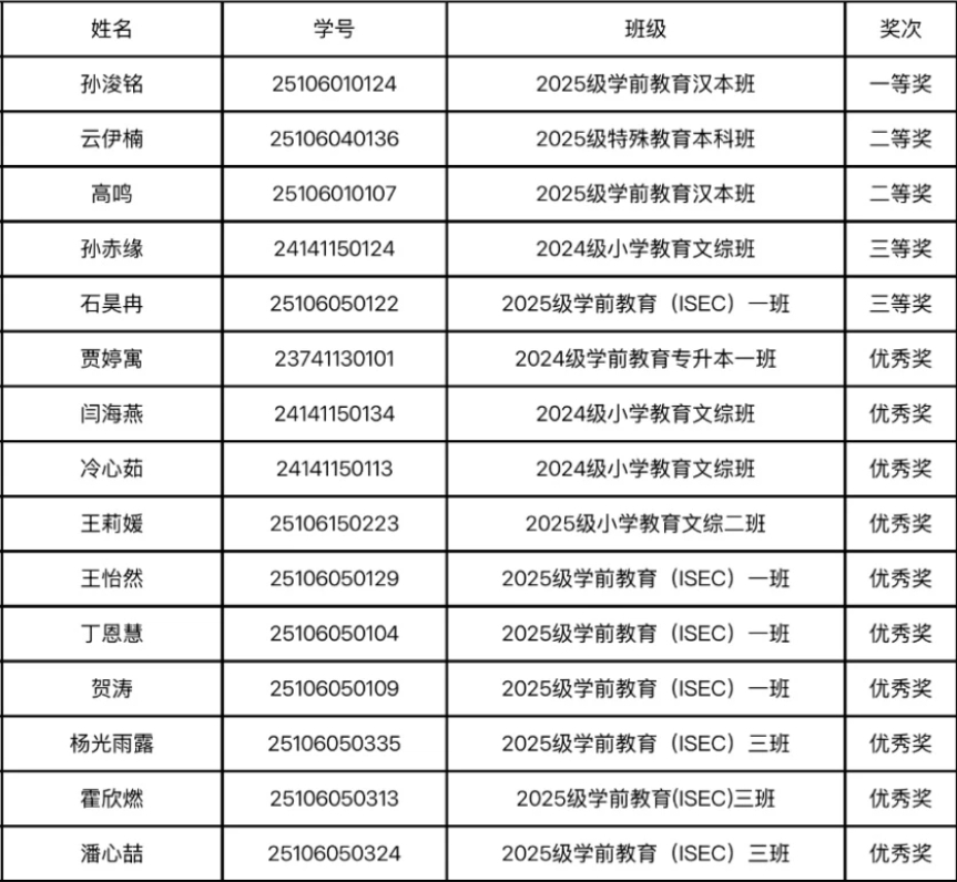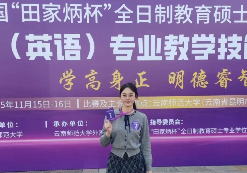 2025年11月14至16日,全国“田家炳杯”全日制教育硕士学科教学(英语)专业教学技能大赛决赛在云南师范大学举行,赤峰学院外国语学院陈昕远同学荣获“优秀教学设计奖”。
