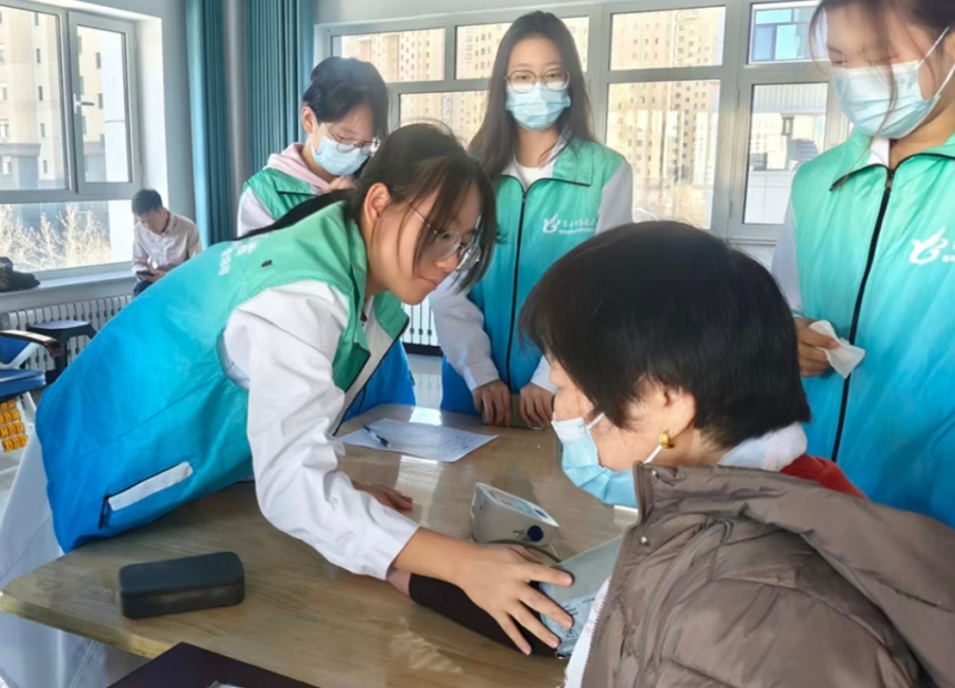 2025年11月20日,赤峰学院人体生命科学馆近20名志愿者师生走进向阳街道牧歌社区义诊,为居民测量血压、血糖并给出健康建议,服务百余人次,提升居民健康管理意识,受到广泛好评。