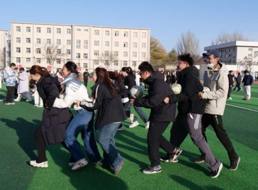2025年11月15日下午,赤峰学院经济与管理学院趣味运动会在操场启幕,全体师生参与。运动会设置“语”你同行普通话接力赛、捡豆豆、气球运纸杯、企鹅漫步、五人六足、六人夹球折返等多个趣味项目,师生在欢声笑语中展现协作与竞技风采。