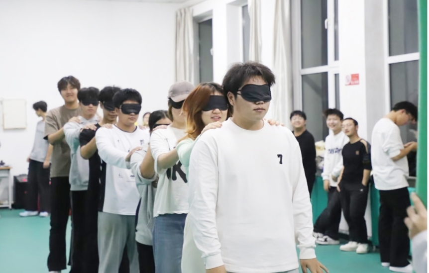 2025年11月15日下午,赤峰学院体育学院“塔特西亚骑士团”在崇仁楼后操场开展“骑士试炼”素拓,有“大树与松鼠”“三人夹球”“我是你的眼”“毛毛虫赛跑”“听歌识曲”等项目,帮助新成员融入团队,淬炼初心。