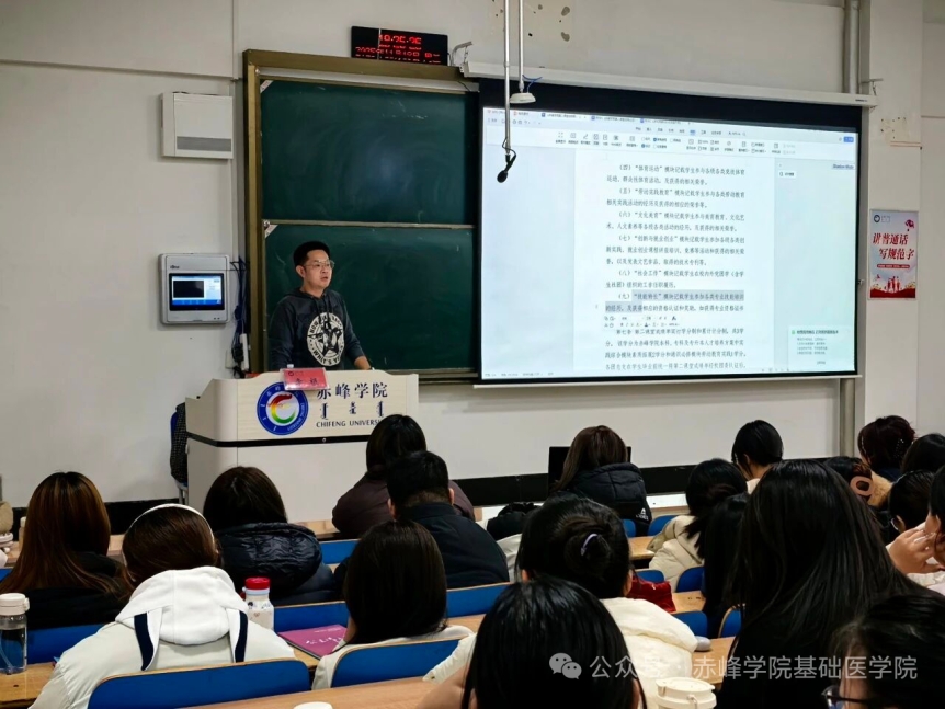 2025年11月18日晚,基础医学院在崇学楼117教室召开《赤峰学院第二课堂成绩单实施办法》解读会,校团委李根副部长受邀讲解,详细解读办法模块与标准,现场答疑,助力办法实施与学风建设。