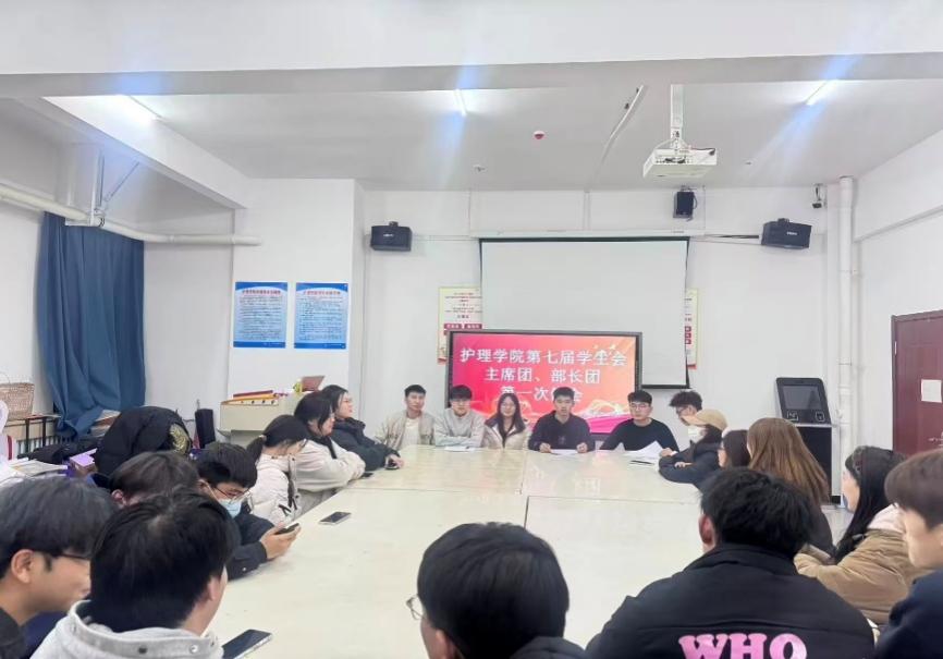 2025年11月20日,护理学院第七届学生会主席团及部长团首次例会在实训楼C座605召开。党总支书记李娜、团总支书记包宇男及24名成员参会,明确组织架构与任命,部署学风建设月、宿舍文化节等重点任务,强调例会、考勤、审批等制度。本次例会凝聚力量,明确方向,为校园建设和同学服务贡献力量。