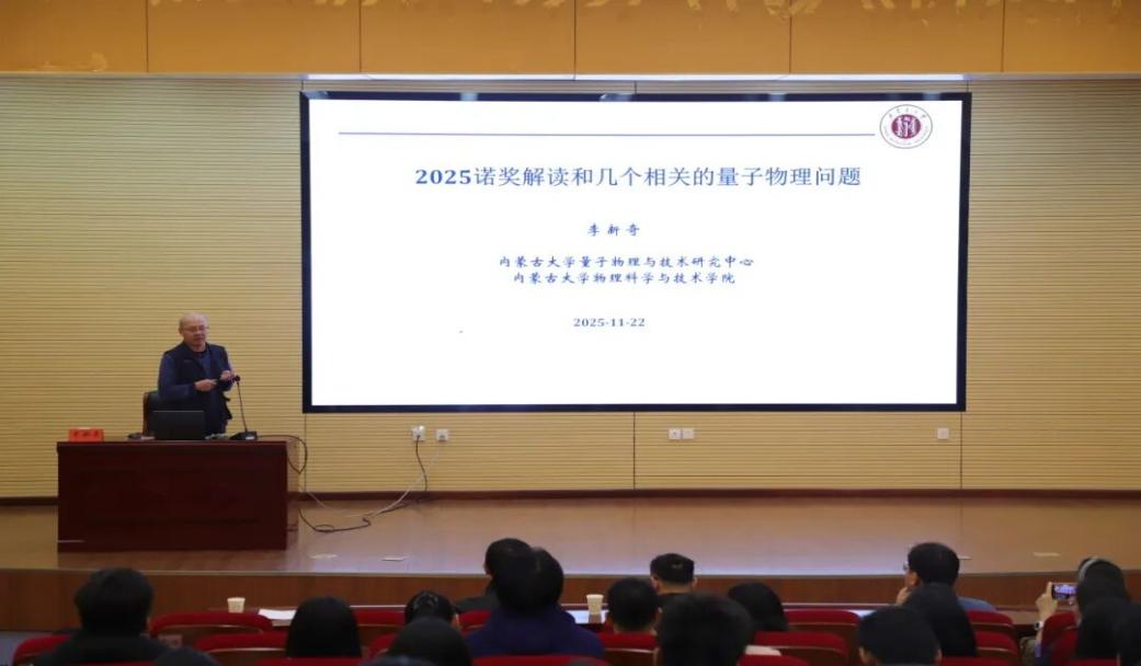 2025年11月22日,赤峰学院科技大讲堂第三讲在博物馆举行,李新奇教授解读2025诺贝尔物理学奖“宏观量子效应”,探讨量子叠加、测量等问题,现场互动热烈