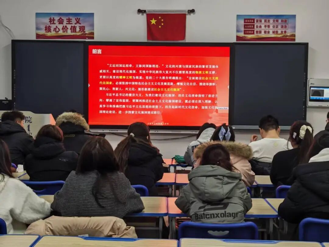 2025年11月26日,法学与商务学院第五届青马研习班集中观看习近平文化思想大讲堂第四讲,学习“两个结合”等核心要义。活动夯实学员理论根基、强化文化自信与担当,法学与商务学院后续将持续开展理论学习,助力学子成长为担当民族复兴大任的时代新人。