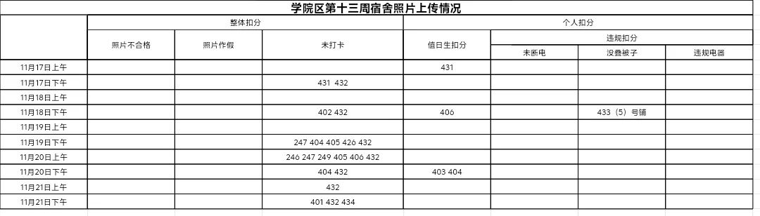 第十四周校本部学生宿舍安全及内务检查结果公示