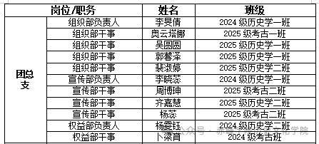 2025年11月20日下午,历史文化学院举办第26届团总支、学生会负责人与干事竞选面试。团总支书记季林林、学工办主任那钦及刘兆霖老师出席,严格选拔、人岗匹配。纳新圆满落幕,欢迎新成员加入,携手推动团学工作再上新台阶。