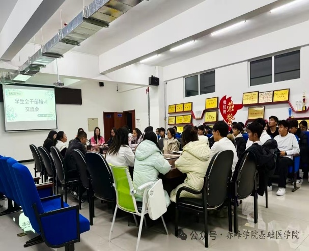 近日,赤峰学院基础医学院在崇理楼C636会议室举办学生会培训交流会,姜晓东及师生约50人参与。会议围绕“明制度、强能力、担使命”展开,要求成员规范工作、提升自我。该活动是基础医学院“学风建设活动月”环节,助力提升学生干部能力素质。