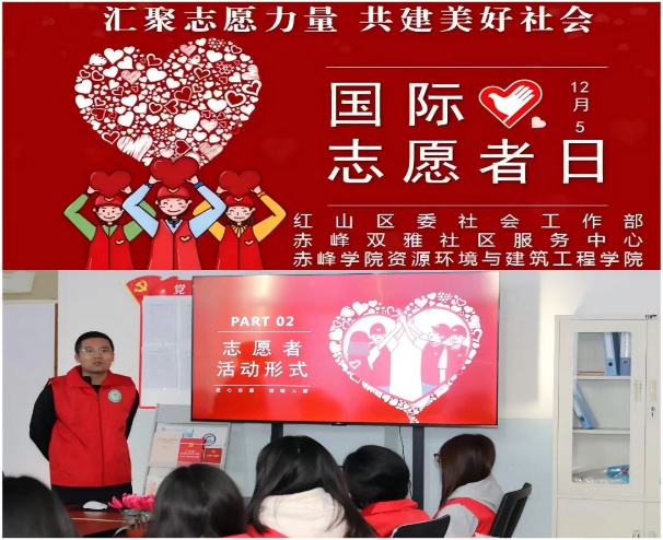 12月5日,赤峰学院资源环境与建筑工程学院联合红山区委社会工作部、赤峰双雅社区服务中心,在建工楼508会议室举办国际志愿者日主题会,20余名青年志愿者代表参与。活动以传承志愿精神为核心,会上姚群老师分享工作思路,志愿者们围绕志愿工作展开讨论、分享经历,助力明确服务方向。