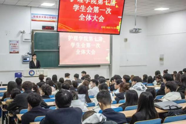 11月28日,赤峰学院护理学院在综合楼二楼西阶梯召开第七届学生会第一次全体大会,共90名成员参与。大会以“明确服务定位、凝聚团队合力”为核心,回顾过往工作、明确服务属性,并推进了部门对接、工作计划汇报等四项工作安排,助力新团队凝聚共识、推进学生会工作。