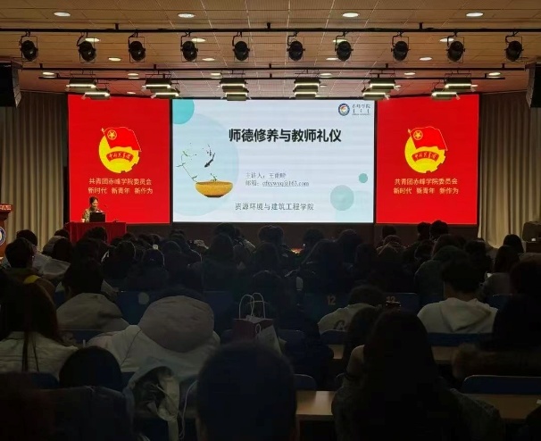 12月4日,赤峰学院资源环境与建筑工程学院在大学生活动中心举办“学高为师,身正为范”师德修养与教师礼仪专题讲座。活动邀请王雨晴老师主讲,200余名师生参与,旨在深化师范生职业素养教育,弘扬新时代教师精神。讲座围绕“学识涵养”“师德底线”“礼仪实践”展开,帮助师生明确教师职业规范。