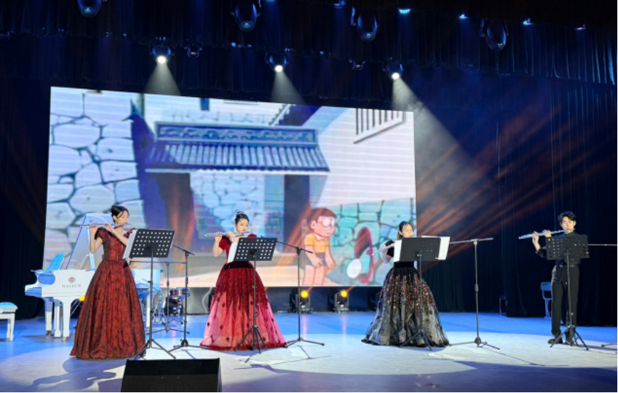 2025年12月10日,学校大剧场音乐学院举办“北疆牧歌·笛语情长”长笛师生音乐会,师生携手区内专家演绎经典、创新曲目,融合北疆风情、红色情怀与中西音乐风格。实现西洋乐器与民族文化、草原风情的深度融合,为民族音乐传承创新注入新活力。