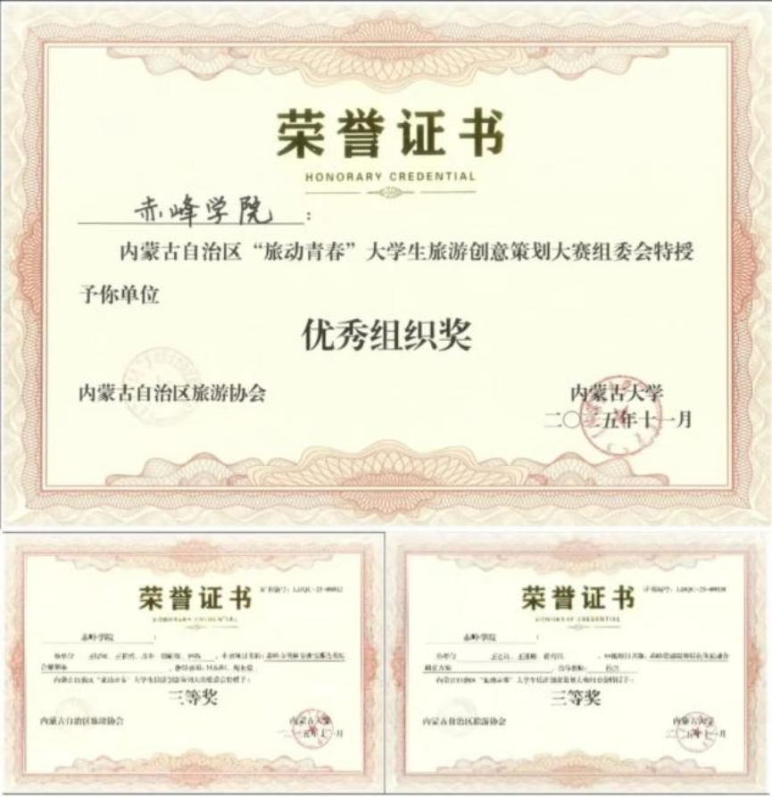 2025年11月30日,首届内蒙古自治区“旅动青春”大学生旅游创意策划大赛举办,法学与商务学院协办并组织6支队伍参赛,斩获2项三等奖、4项优秀奖,学校获优秀组织奖。大赛展现了法学与商务学院学子在旅游创意策划领域的专业素养与创新能力;未来法学与商务学院将以此为契机,培育文旅融合所需创新型人才。