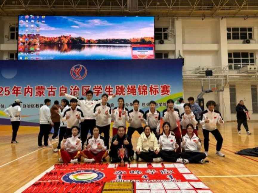 2025年内蒙古大学生跳绳锦标赛落幕,口腔医学院刘羽涵获女子30秒双摇季军,所在队伍摘得两项亚军。她刻苦备赛、赛场稳发挥,获奖彰显学院“五育并举”育人成效。赛场淬炼的坚毅将化为学子奋进动力,助力学业深耕与国家发展。
