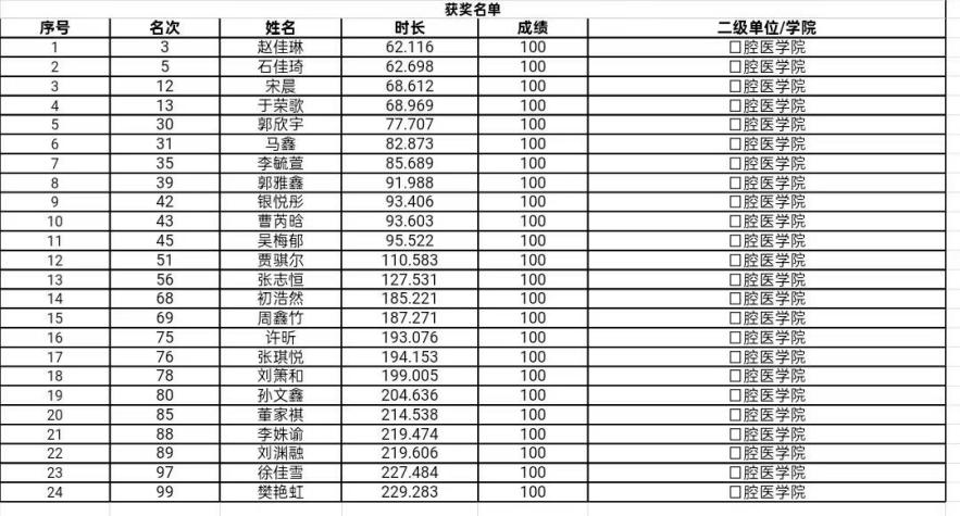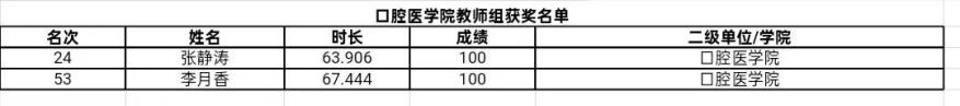 近日,口腔医学院师生积极响应有奖竞答活动。本次活动中,赵佳琳同学与石佳琦同学分别取得了第3名和第5名的优异成绩,并荣获积极参与奖。同时,张静涛、李月香老师分别荣获教师组第24名、第53名。此次活动口腔医学院师生在答题中凝聚共识、在比拼中坚定信念,为推进中华民族共同体建设、绘就民族团结进步的时代画卷贡献了口腔医学院的力量。