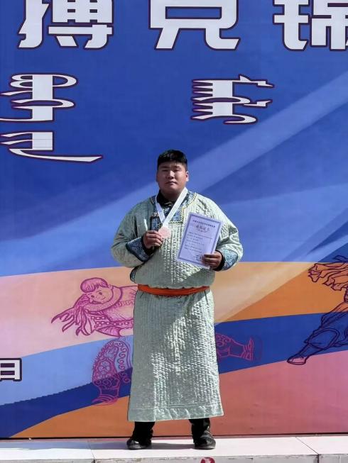 9月30日,2025年内蒙古自治区学生搏克锦标赛在呼和浩特民族学院圆满落幕。2023级蒙医本科一班学生查森那在校园男子组个人赛中脱颖而出,斩获季军。此次获奖不仅是对查森那同学个人努力的肯定,更彰显了学校在民族传统体育传承与“体教融合”实践中的丰硕成果。