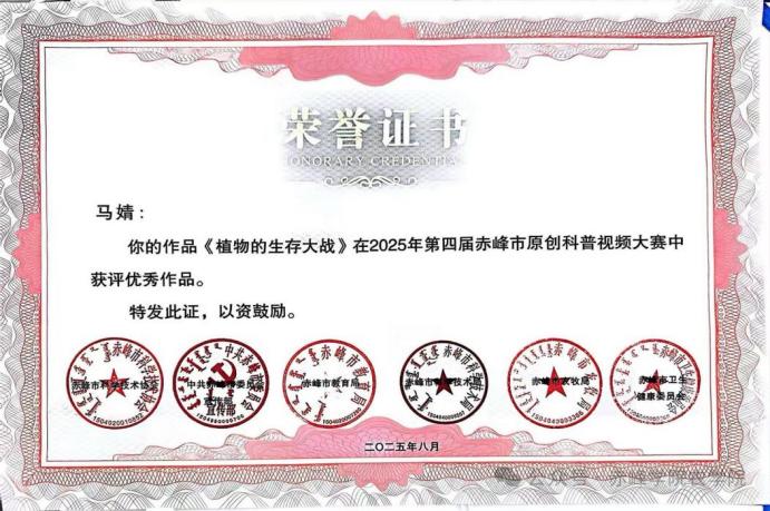 近日,农学院张丽老师指导的3项学生科普作品在第四届赤峰市原创科普视频大赛中获奖。获奖作品通过不同主题科普植物科学知识,此次获奖体现学院注重培养学生创新创业能力和科学素养,农学院将继续推动产学研融合,输送优秀人才。