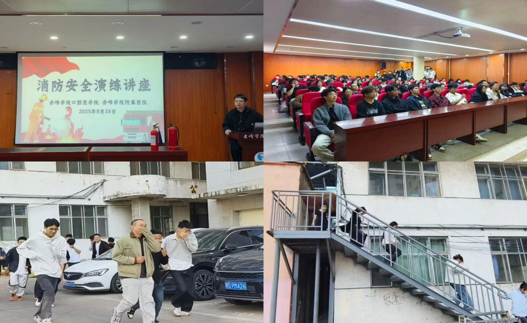 9月24日下午,口腔医学院联合赤峰学院附属医院(红山院区)组织学生开展活动。讲座讲解消防知识、演示器材操作;演练中学生有序撤离并实操灭火器。活动提升学生应急能力与安全意识,口腔医学院将持续开展安全活动。