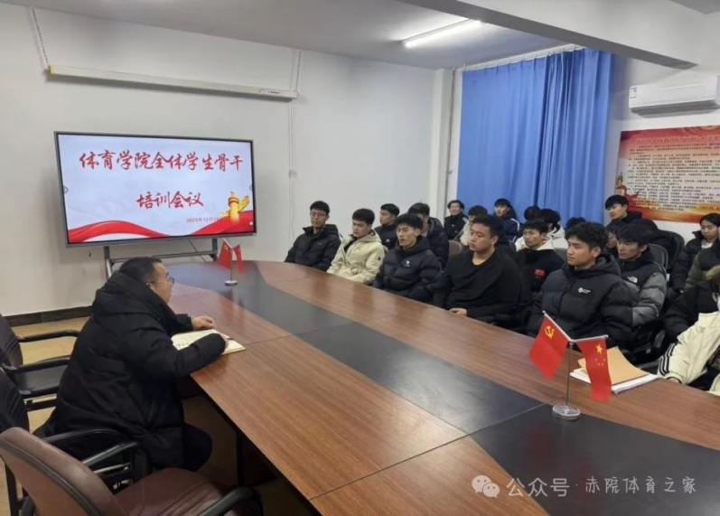 12月24日,体育学院召开由团总支书记米宏伟主持的全体学生骨干培训会议,全体学生骨干参会。培训紧扣履职需求设置理论与实践内容,米宏伟老师作动员讲话,明确学生骨干的定位与要求,骨干们认真聆听、积极研讨交流。此次培训成效显著,不仅提升了学生骨干的责任意识与履职能力,而且搭建了良好的交流平台,更为体育学院后续学生工作开展奠定坚实基础。