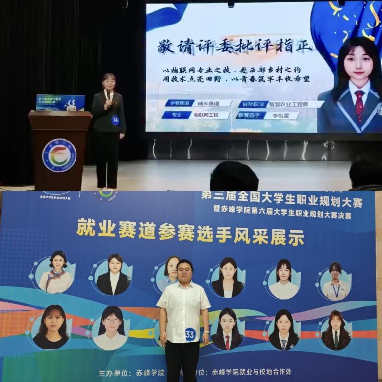 12月22日,赤峰学院第六届大学生职业规划大赛决赛举办,38名本研选手同台竞技,物理与智能制造工程学院推荐的2025级物联网工程本科班和光电信息工程班分别获得成长赛道、研究生就业赛道银奖,此次获奖体现了物理与智能制造工程学院学子良好的职业规划意识,未来将持续以赛促教促学,助力学生科学规划职业发展。