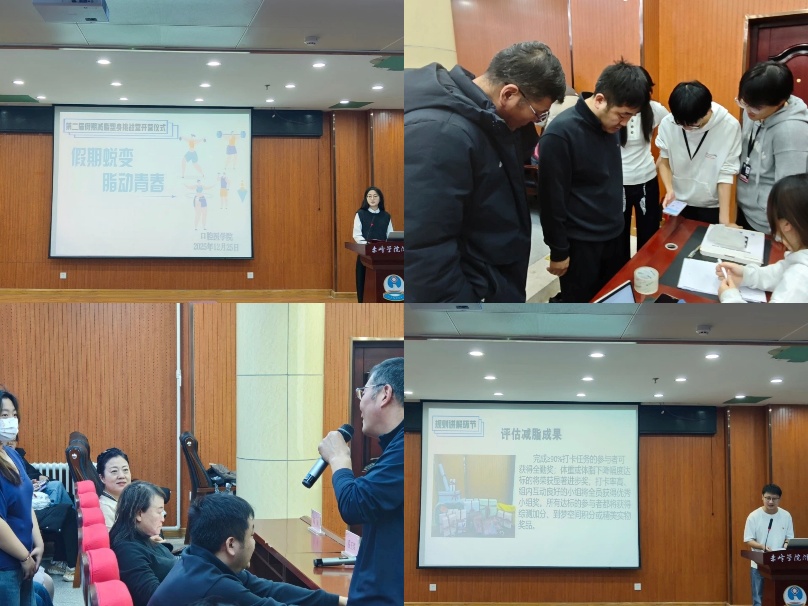 12月25日,口腔医学院举办“假期蜕变·脂动青春”寒假健康减脂塑身挑战营启动仪式。活动由宋晨主持,口腔医学院领导、体育学院黄鑫老师、附属医院潘玉荣主任及师生代表参加并进行体脂检测。此次活动是口腔医学院落实健康育人理念的重要举措,未来将持续推进校园健康文化建设。