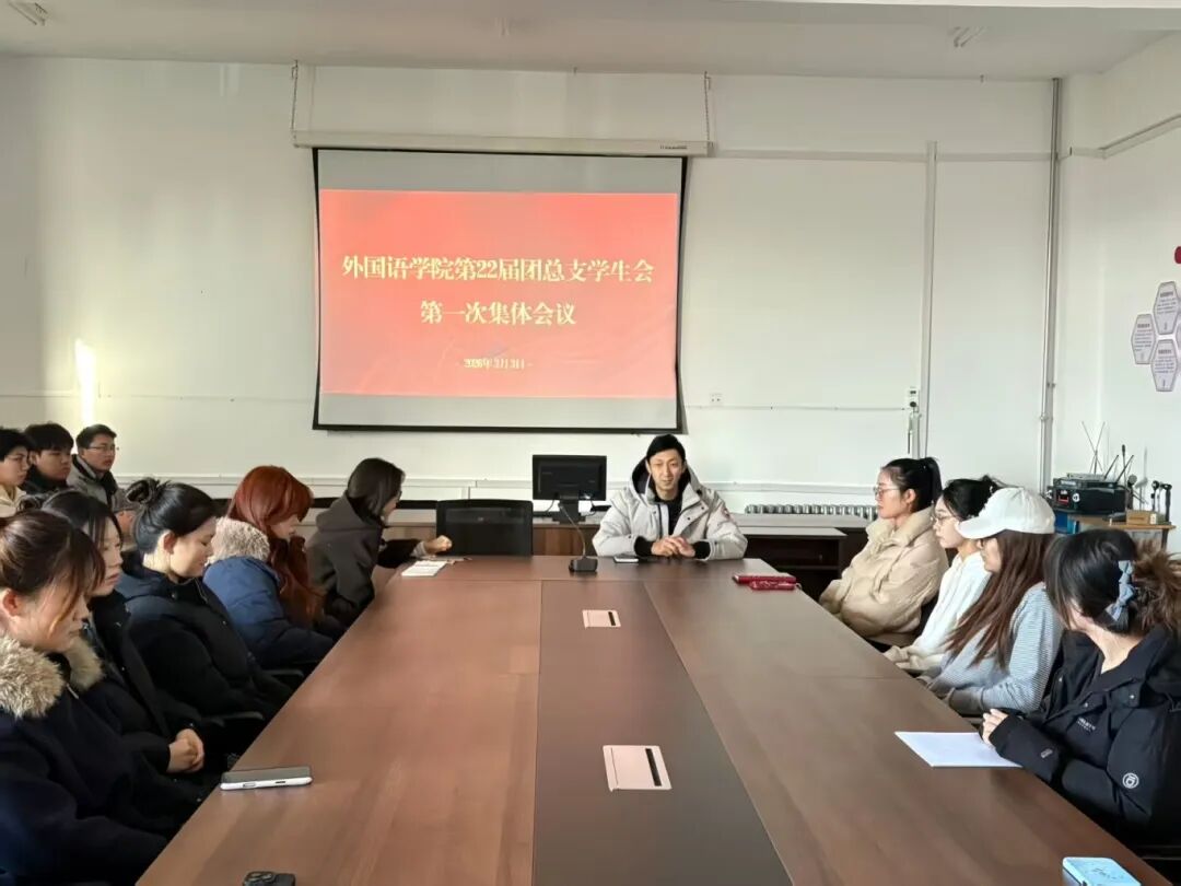 3月3日下午,外国语学院第22届团总支学生会本学期第一次全体会议在崇仁楼332教室召开。赵阳、毛文奇、王艳艳出席会议,分别对新学期学生工作、日常管理、团日活动作出部署与要求。此次会议统一思想、明确任务,为新学期学生工作开展奠定基础。全体学生干部将以更务实作风投入工作,服务同学、助力外国语学院发展。