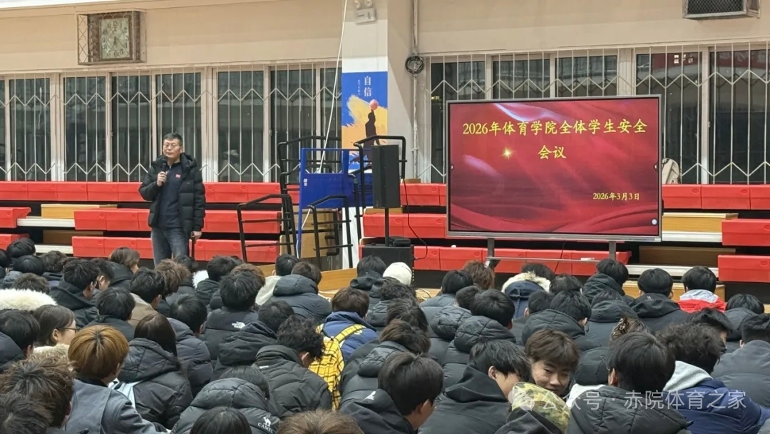 3月4日,体育学院在体育馆召开安全教育大会,由党总支副书记黄鑫主持,杨珊珊老师出席,全体学生参会。此次大会有效提升了学生的安全防范意识与自我保护能力,筑牢了校园安全防线。