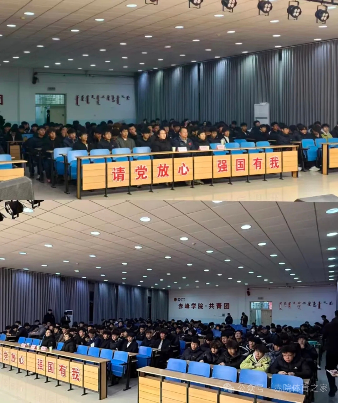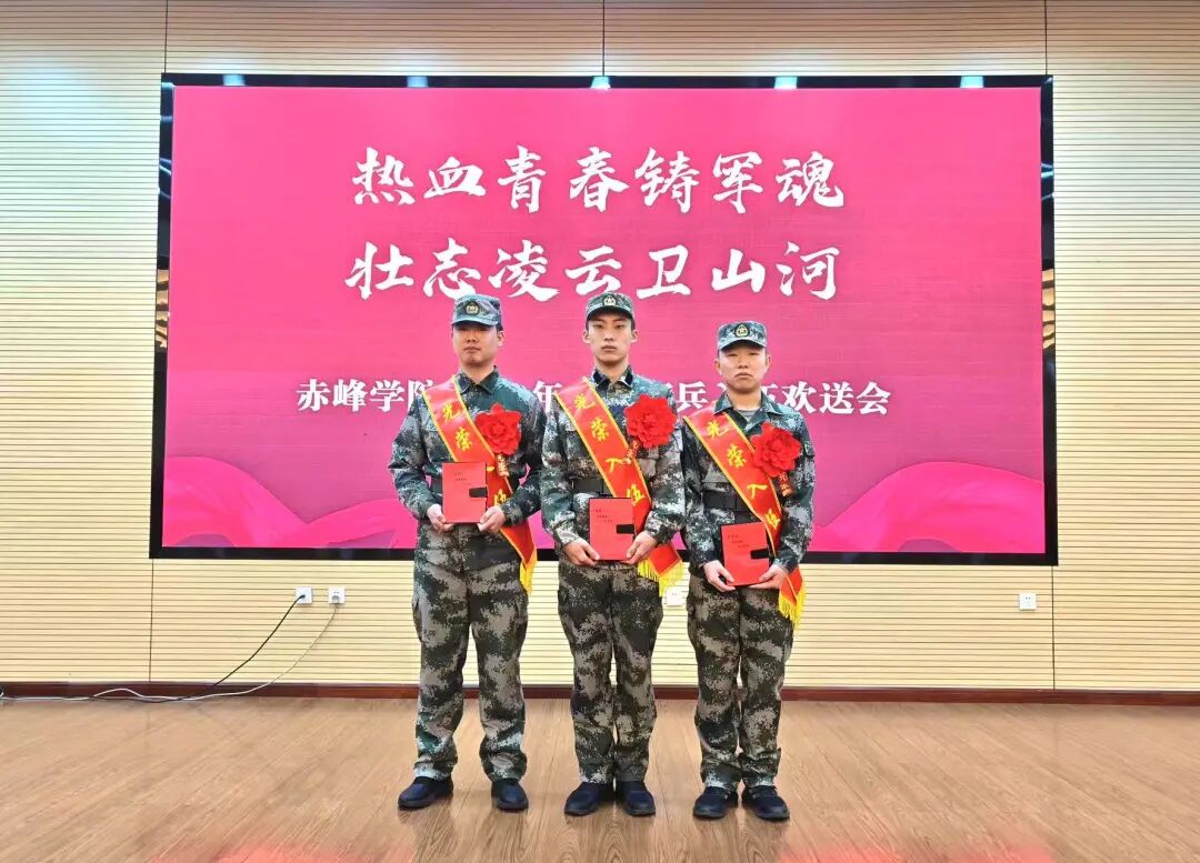3月4日,赤峰学院2026年春季入伍新兵欢送会在博物馆报告厅举行。我校9名新兵中,物理与智能制造工程学院有3名优秀学子入选,分别是2022级机械设计制造及其自动化班王晨歌、2024级应用物理学班安家贤及2025级电子信息工程班孙海东。
