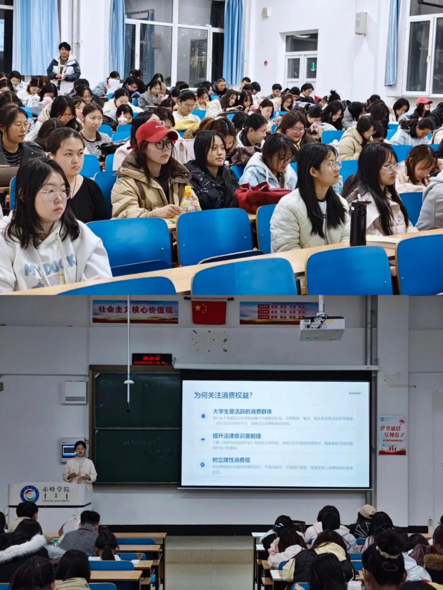 活动五:文学院举办消费者权益保护主题讲座,围绕大学生常见消费场景普及维权知识,解读相关法律并讲解维权流程,有效提升了学生法治素养与维权能力,护航校园安全消费。