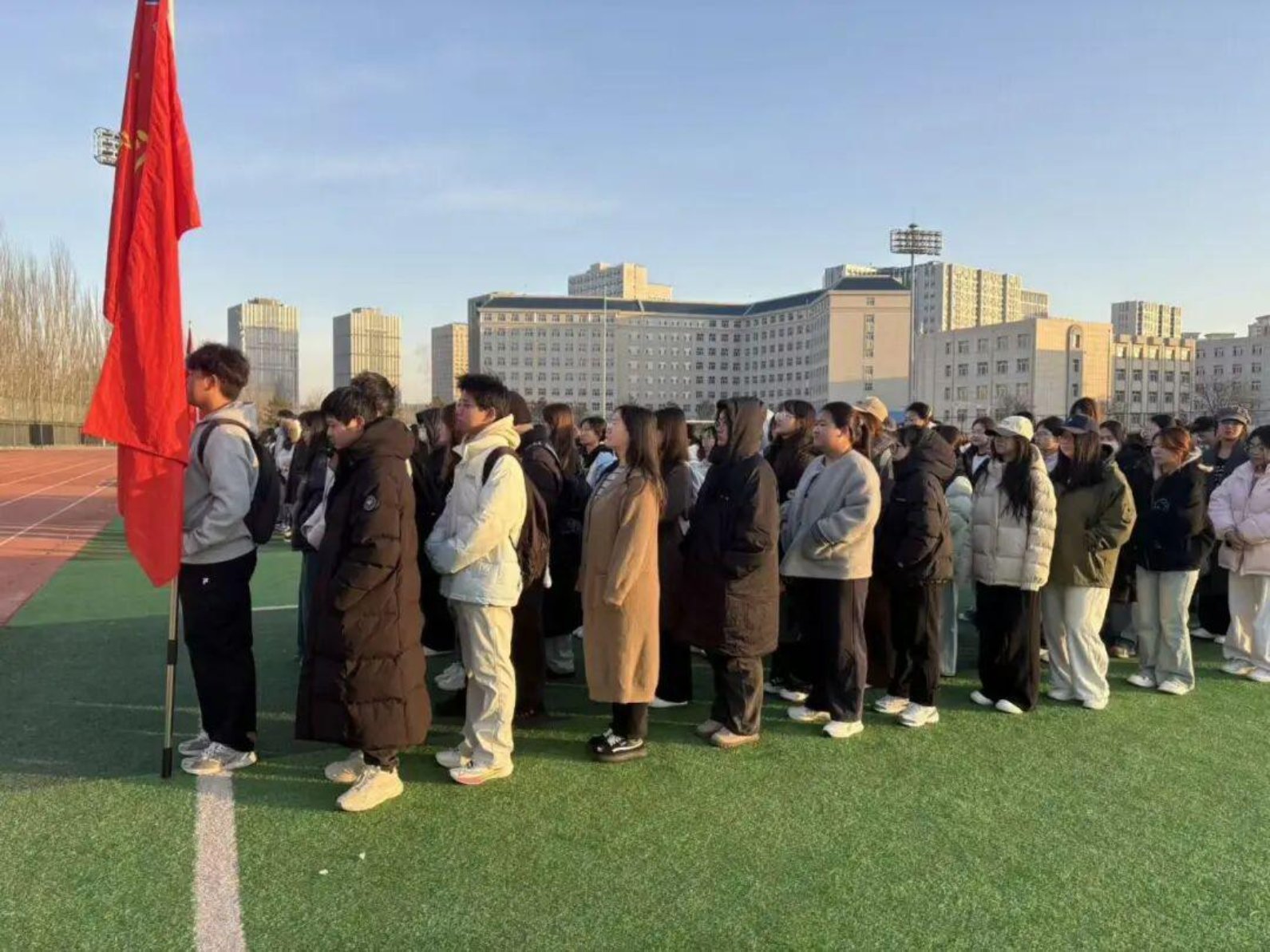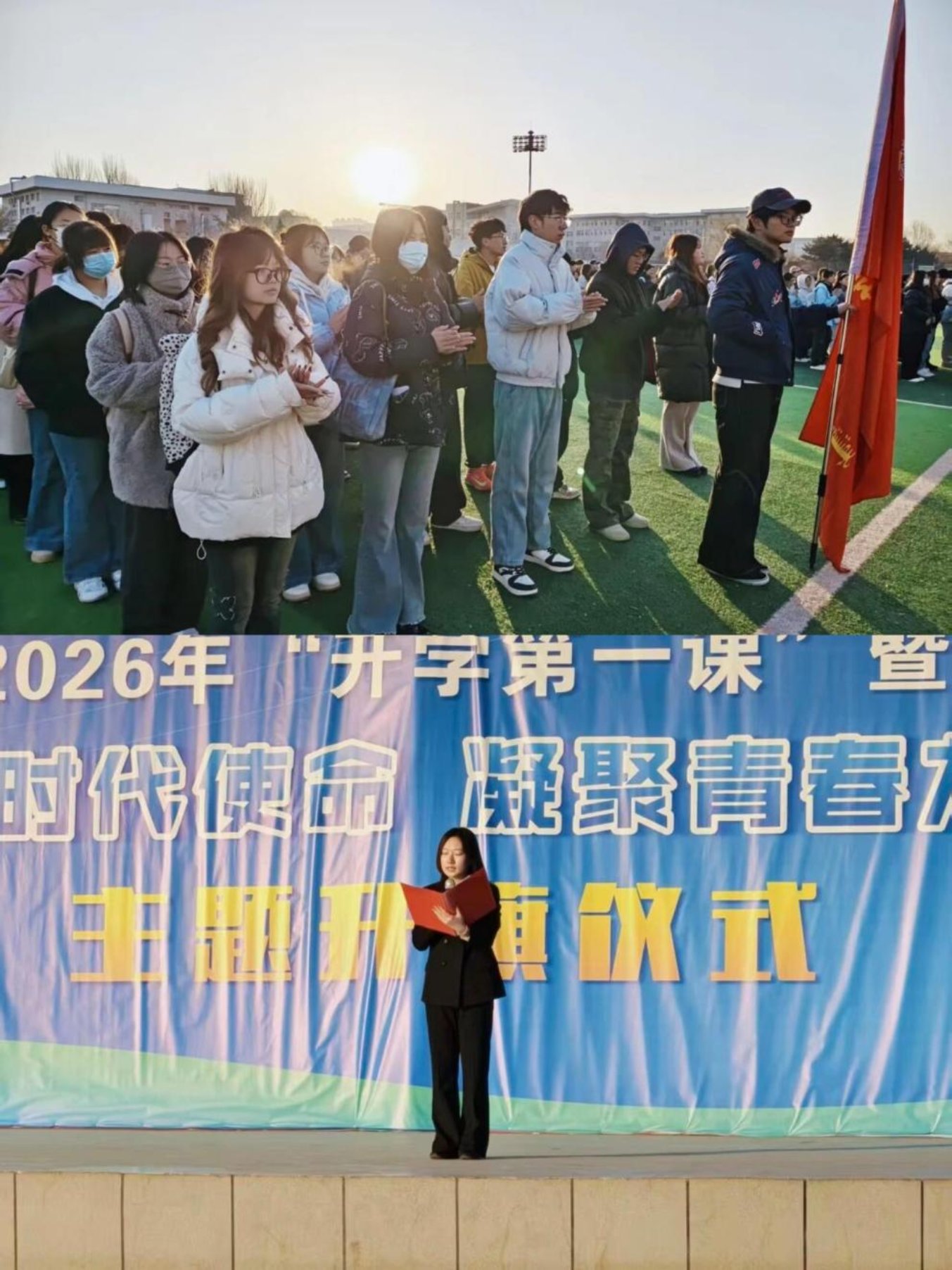 活动二:3月16日,外国语学院联合文学院在田径场举行“学习雷锋精神,争做时代新人”主题升旗仪式。师生庄严升旗,学生代表演讲号召践行雷锋精神。活动弘扬奉献精神,强化青年责任担当,推动雷锋精神内化于心、外化于行。
