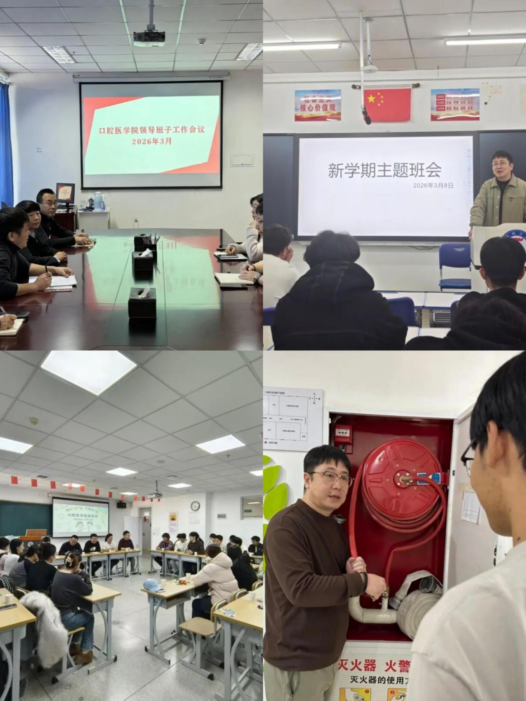 活动二:近日,口腔医学院落实学校部署,召开班子会、辅导员会,开展主题班会、宿舍安全检查、班级座谈等工作,抓实教学、服务与安全保障,确保新学期开学平稳有序,助力口腔医院学院高质量发展。