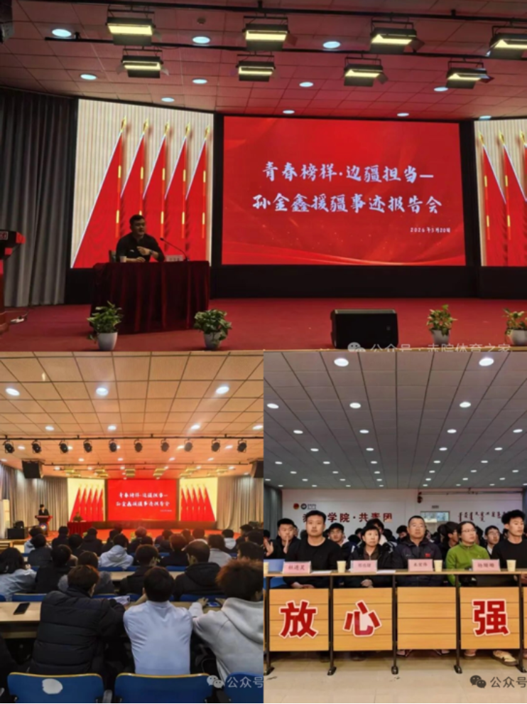 活动二:3月20日,体育学院举办援疆事迹报告会,邀请优秀校友孙金鑫主讲,体育学院学生参与。孙金鑫分享了在校经历、援疆基层工作感悟,并针对体育专业学生给出就业、考编及职业规划实用建议。此次报告会发挥榜样引领作用,加深了学生对援疆工作的认识,为其未来发展提供指导,激励体育学院学子勇担使命。