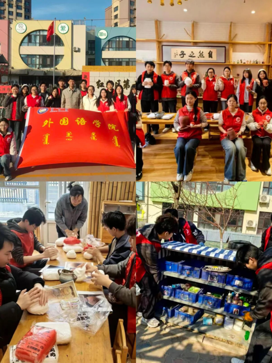 活动四:3月20日,外国语学院前往红山区第十一幼儿园开展“青春聚力担使命,志愿微光暖北疆”志愿服务活动。志愿者们清理园区环境、整理儿童玩具,共同开展了红山文化陶罐黏土制作活动,以劳动实践与文化传承践行志愿精神。此次活动提升了学生实践与服务意识,外国语学院也将持续搭建实践育人平台。