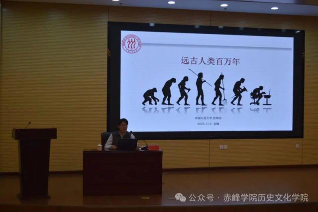 11月6日,历史文化学院联合人大历史学院等主办红山文化讲坛“中国考古十讲”第七讲。人大仪明洁教授以《远古人类百万年》为题,梳理人类演化阶段,近200名师生到场聆听,互动环节解答考古专业疑问。