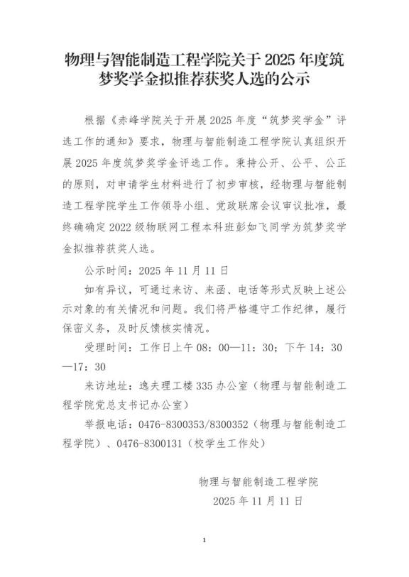 关于2025年度筑梦奖学金拟推荐获奖人选的公示