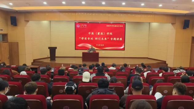 11月13日晚,中医(蒙医)学院举办“学有专攻 职引未来”专题讲座,师生全员参与。讲座中,中、蒙医学专业负责人分别从专业发展、就业路径等方面,结合行业实践给出针对性指导,聚焦“学业-就业”衔接,是学风建设月重要活动,助力构建精准学业就业指导体系。