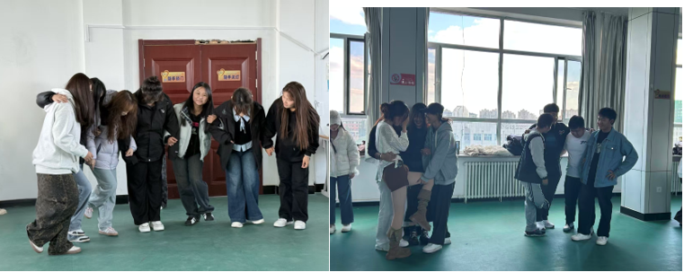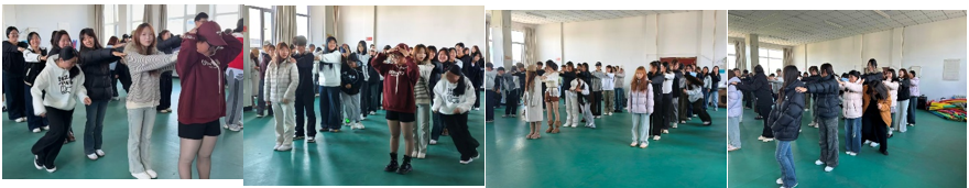 这场游戏不像是冒险,更像是一场喜剧。参与者们排列成行,搭着肩膀依次站好,由最后一个同学开始像贪吃蛇一样飞速走位,最终抵达胜利的前方。搞笑中透露着专注,此情此景不禁让人想起“忍不住化身一条固执的鱼”的旋律。