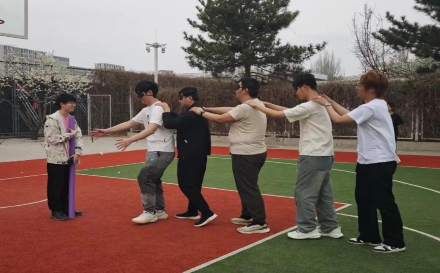 大家好呀!我可是团队默契的试金石。分组后的同学们按竖排站好,前面的同学统统戴上眼罩,瞬间“失明”,最后一位同学则肩负起“眼睛”的重任。场地里随机藏着道具,最后一位同学通过轻轻拍前一位同学的肩膀,一个接一个传递指令。这过程紧张又刺激,全靠彼此之间的信任,朝着道具前进。当成功拿到道具的那一刻,那成就感简直要爆棚!