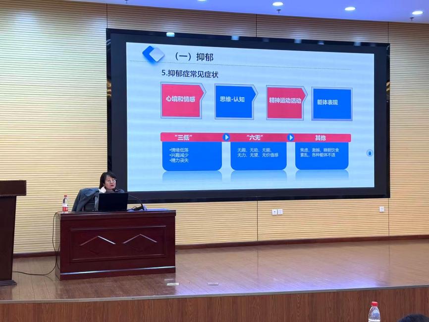 主任拥有25年精神科从业经验、12年精神科急诊工作经历,兼具深厚临床功底与丰富管理经验,在精神卫生领域造诣深厚。讲座中,结合当代大学生学业、人际、就业等多重压力现状,系统解读抑郁情绪的识别方法、干预路径,并通过真实案例剖析,分享实用情绪疏导技巧班级心理委员开展心理健康工作提供专业指导。