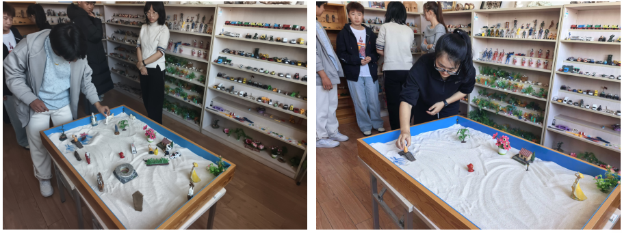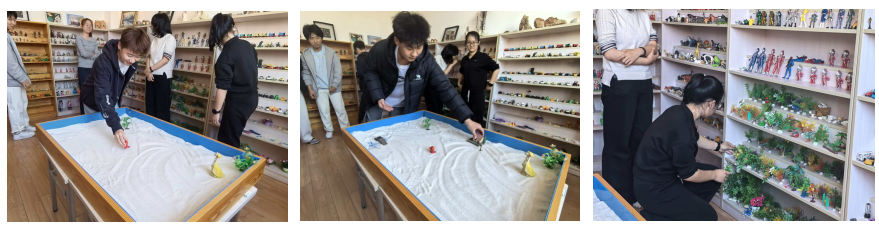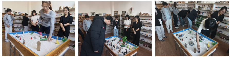 每一件沙具的选择、每一处场景的布局,都是内心世界的真实投射。过程中,大家相互尊重,默契配合,在有限的空间里兼顾个人表达与团队协作,悄然拉近了心灵距离。同学们分享各自的创作初衷与内心感受,解读沙具背后的象征意义。指导老师结合专业知识,对作品进行解读与疏导,帮助大家挖掘沙具背后的深层心理内涵。